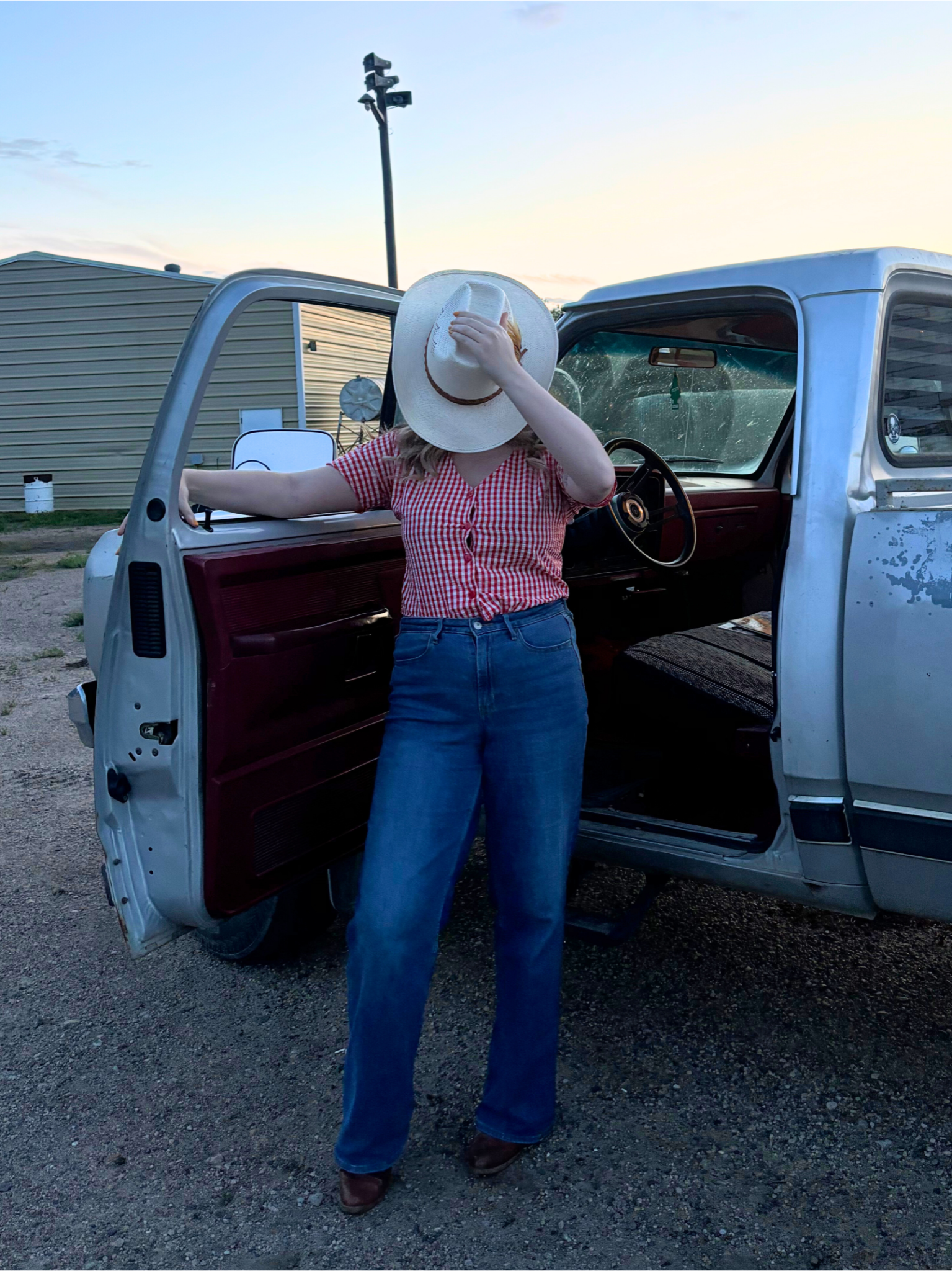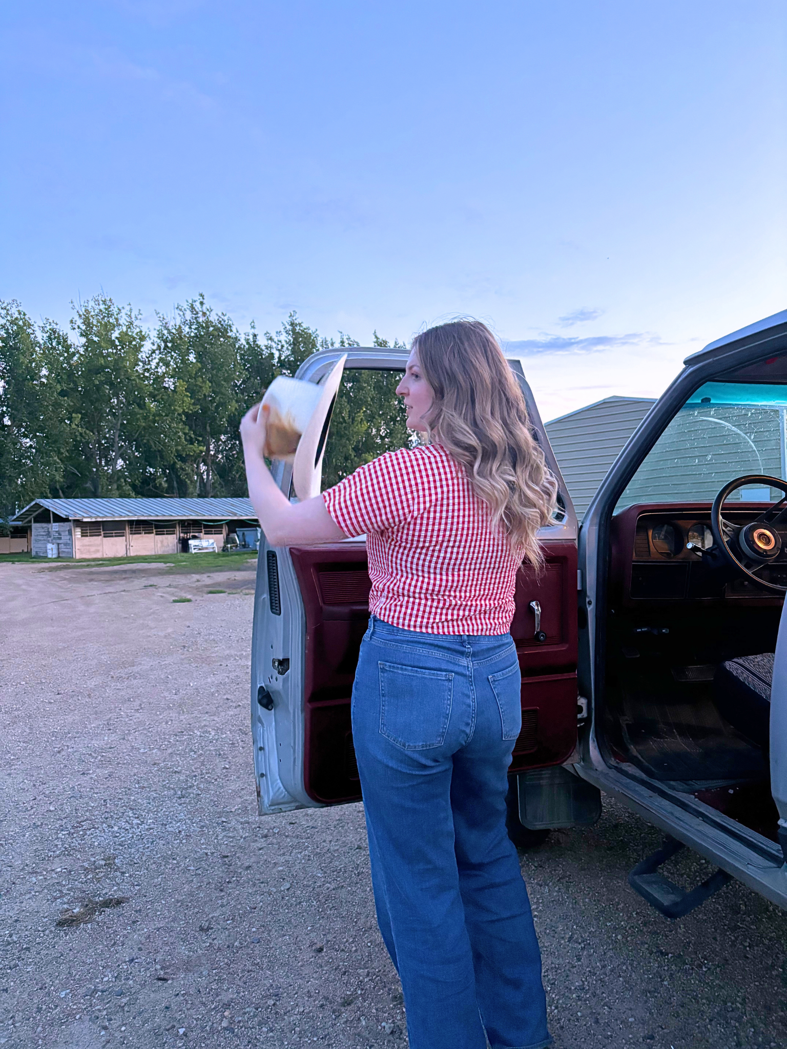 This medium-sized gingham tie-top is perfect for your next rodeo or casual outing. Featuring large red buttons and a classic gingham pattern, it offers a comfortable fit with no stretch. The tie-front design is size forgiving and can be adjusted to wear cropped or longer, depending on your preference. A versatile and stylish addition to your wardrobe.