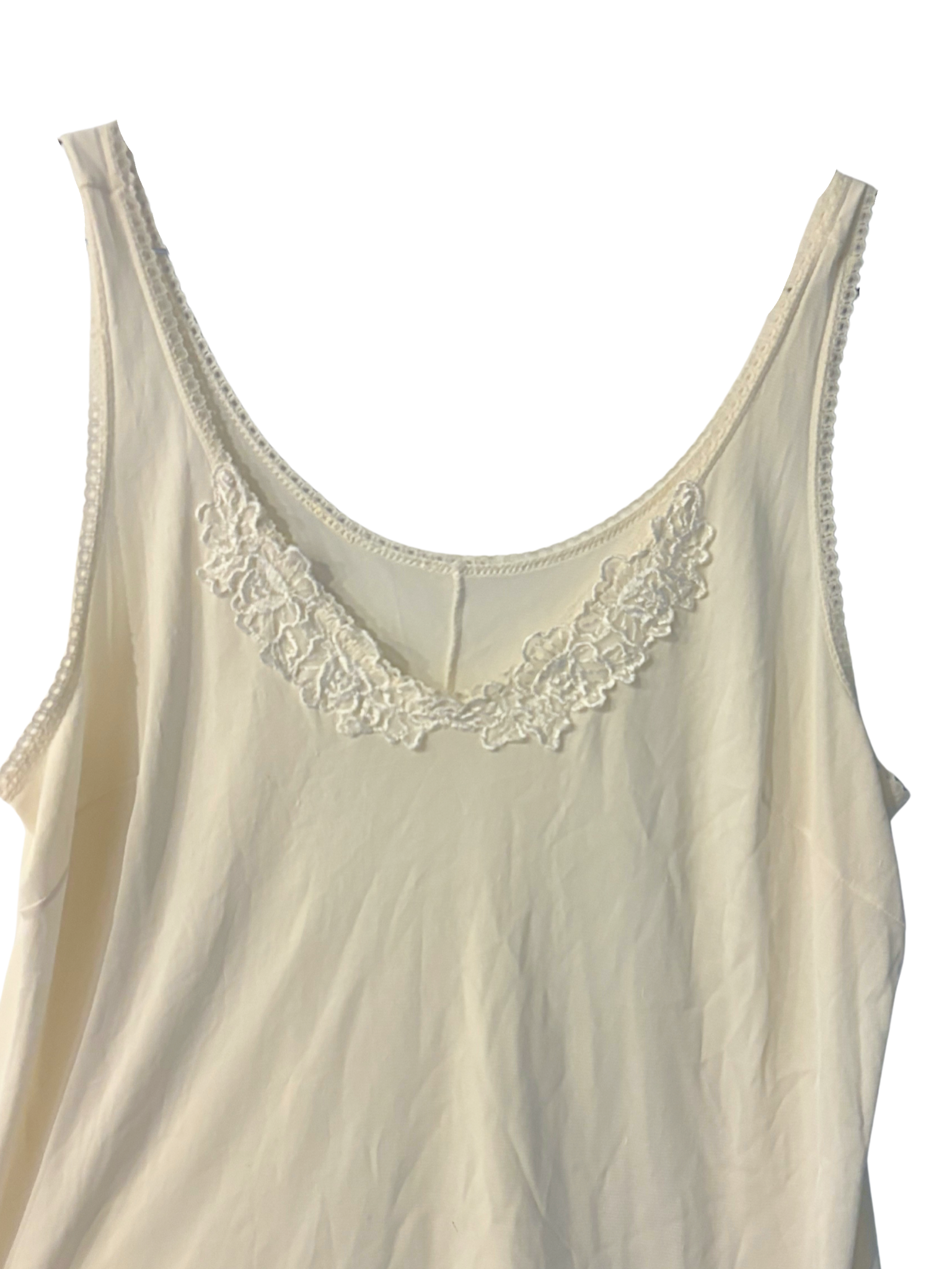 This Ivory Bloom Tank in cream features delicate lace appliques along the neckline, adding a subtle touch of elegance. Its loose, flowy fit offers comfort and effortless style, making it a versatile elevated basic for any wardrobe. Perfect for layering or wearing on its own.
